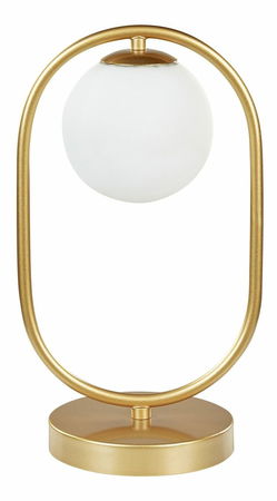 Zakomponováním této stolní lampy do své domácnosti rozzáříte jakoukoli místnost a zároveň okouzlíte všechny hosty. Tento kousek je vyroben z odolného železa a skla, je odolný, vydrží vám dlouhá léta a jeho údržba je opravdu jednoduchá. Díky nadčasové zlaté barvě a jedinečnému kulatému stínítku bez problémů zapadne do jakéhokoli moderního interiéru. Svým designem svítidlo dokáže vytvořit příjemnou okolní záři, která krásně vynikne v ložnici nebo obývacím pokoji.