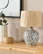 Zútulněte svůj interiér pomocí této jedinečné stolní lampy. Podstavec, který je skutečným uměleckým dílem, imituje nadčasový vzhled žuly v keramické podobě a plynule doplňuje monochromatickou eleganci. Lampa, korunovaná papírovým stínítkem v klasickém tvaru bubnu, vyzařuje sofistikovanost a zároveň vrhá teplou, příjemnou záři. Vychutnejte si dokonalé spojení tradičního půvabu a moderního stylu.