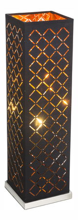 Stolní lampamatný nikl, textilní černé stínítko,kabel 1,6 m,stínítko s ozdobným děrováním,spínač,dxšxv: 150x150x570,bez 1xE27 40W 230V