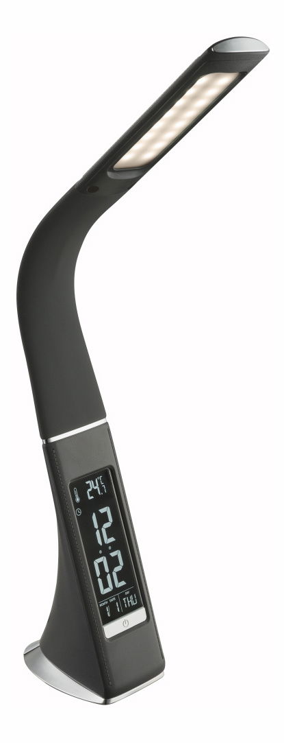 Stolní lampaplastšedáchroms hodinami a budíkemflexozměna barvy světlaCCT 3000 - 4500 - 5800Kstmívatelnéfixovatelnou barva < br> dotykový stmívačDxŠxV: 250x70x5001xLED 65W 5V240lm.