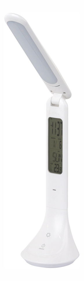 Stolní svítidloplastbíláhodinykalendářbudíks adaptéremzapnutí dotykemdotykový stmívačvčetně 37V 1200mAh Li-ionŠxV: 190x260včetně 1ks žárovky LED 4W 230V250lm4000K.