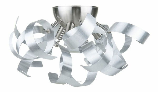 Toto ambientní svítidlo v jedinečném designu se stane výrazným dekorativním prvkem vašeho interiéru. Díky množství kovových vlnek, které připomínají stuhy, osvětluje místnost jasným a teplým světlem. Jeho elegantní design podtrhuje dokonalá kombinace broušeného niklu a hliníku.