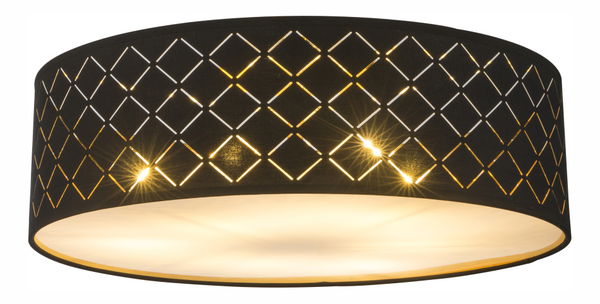 Stropní svítidlomatný nikl, textilní černé stínítko,výška stínítka 18 cm,s ozdobnými zářezy,D: 600,H: 220,bez 6xE27 60W 230V