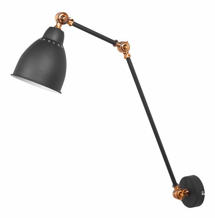 Toto nástěnné svítidlo má rameno nastavitelné ve dvou bodech, jakož i flexibilní stínítko, díky čemuž je perfektní volbou jako osvětlení pro práci nebo čtení. Jednoduchá konstrukce s matnou povrchovou úpravou je zvýrazněna měděnými spoji. Design lampy hravě zapadne do každého moderního interiéru.