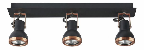 Umístěte tuto lampu na strop a rozzařte svůj obývací pokoj nebo ložnici. Obdélníková lišta je vybavena 3 bodovými světly, které lze nasměrovat libovolným směrem, takže ji budete moci používat jako světlo pro čtení nebo pro práci. Tento kousek je vyroben z odolného železa, díky čemuž se snadno udržuje a má dlouhou životnost. Díky kombinaci černé barvy s měděnými prvky bude vypadat výborně v místnostech v moderním nebo industriálním stylu.