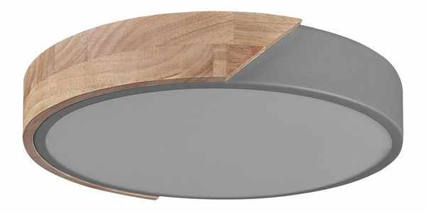 Díky klasickému geometrickému tvaru se toto stropní svítidlo hodí do interiéru v jakémkoli stylu. Jeho rám je vyroben z robustní oceli v neutrální barvě, kterou zvýrazňuje dřevěný prvek ve světlém tónu. Dodává se s vestavěným LED světlem, které osvětluje místnost jemnou a příjemnou září.