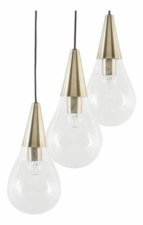 Tento trojitý závěsný lustr je ideální pro zvýraznění jídelního koutu, kuchyňského ostrůvku nebo chodby. Jeho trendový design s čirými skleněnými stínítky zakončenými mosaznými krytkami se perfektně hodí do každého moderního interiéru. Doplňte jej designovými nebo barevnými žárovkami pro navození atmosféry v místnosti.