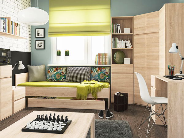 Rozkládací jídelní stůl Granger (lesk černý + beton) (pro 2-6 osob)