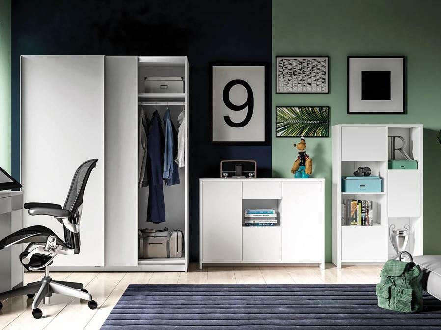 Studentský pokoj Katelyn 1 v nadčasové bílé barvě vytváří ideální prostor pro soustředění i relaxaci. PC stůl Katelyn 2 nabízí komfort při učení, policová skříň Katelyn 4 a komoda Katelyn 5 zajistí přehledné uspořádání knih či dekorací. Prostorná šatní skříň Katelyn 7 efektivně uloží oblečení a doplňky. Minimalistický design nábytku přinese do pokoje svěží atmosféru, ve které se bude student cítit příjemně a motivovaně každý den.