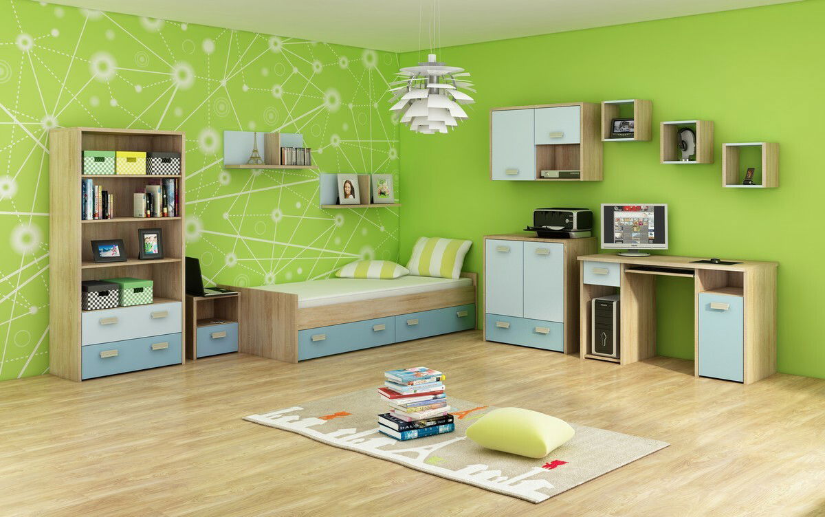 Studentský pokoj Kimi 3 Sonoma světlá + modrá