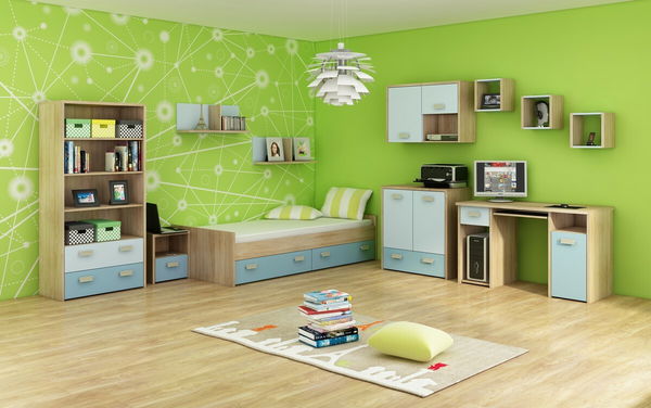 Praktický vysoký regál, který se hodí do dětského pokoje. Ve spodní části jsou umístěny 2 široké zásuvky (se šedými úchyty), které jsou umístěny nad sebou a nad nimi jsou upevněny 3 široké poličky.