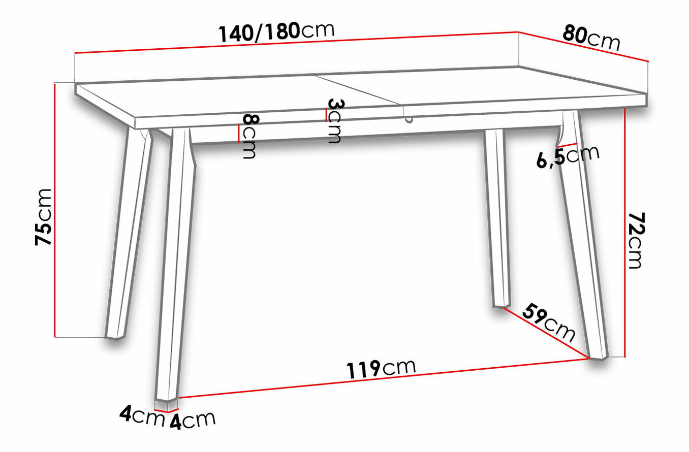 ZobrazitRozkládací stůl Harry 80 x 140/180 V je model s jednoduchým a minimalistickým tvarem, který je k dispozici v různých barevných kombinacích. Stůl bude dokonalý v kuchyni pro každodenní použití nebo v jídelně, kde můžete plně využít velikost stolu. Konstrukce stolu je založena na prvcích z odolného bukového dřeva. Vrch stolu byl pokryt ochranným laminátem a hrany byly chráněny ABS dýhou.