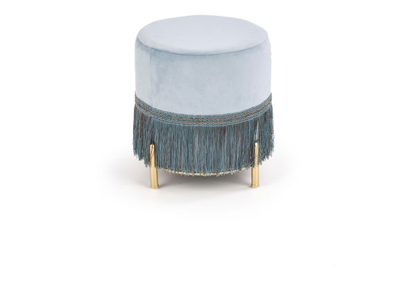 Taburetka Cedrick ve světle modré barvě s detailem ze zlaté barvy je skvělý doplněk pro váš interiér. Vysoká 39 cm a hluboká 39 cm. Tato taburetka je ideální pro použití v obýváku, ložnici, či dokonce v kanceláři jako doplněk k vašemu sedacímu nábytku. Je lehce přenosná a snadno se udržuje v čistotě, čímž vám ušetří čas a úsilí při údržbě vašeho interiéru. doplněk pro váš prostor.