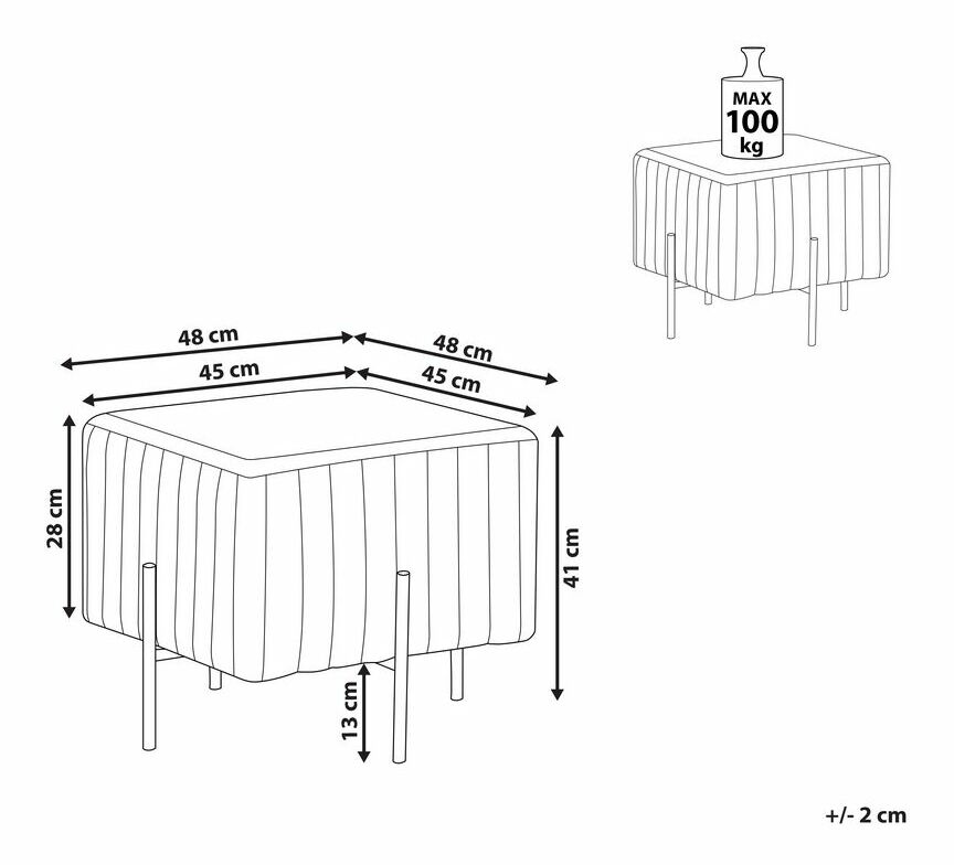 Tato čalouněná taburetka je elegantním a velmi stylovým doplňkem, který vnese nádech luxusu do každého interiéru. Bohatou texturu sametu krásně zvýrazňuje vertikální prošívání, které dodává designu taburetky okouzlující vzhled. Díky univerzálnímu čtvercovému tvaru ji lze použít v předsíni, obývacím pokoji nebo u nohou postele. Taburetka vypadá fantasticky jako samostatný designový prvek a je vhodným doplňkem do interiérů zařízených v eklektickém a glamour stylu.