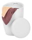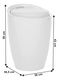 Taburetka s kulatou základnou s úložným prostorem pod čalouněným sedákem dodávána v bílém provedení. Materiál je bílý plast a potah je textilní kůže PU v bílém provedení, nosnost je 100 kg.