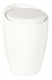 Taburetka s kulatou základnou s úložným prostorem pod čalouněným sedákem dodávána v bílém provedení. Materiál je bílý plast a potah je textilní kůže PU v bílém provedení, nosnost je 110 kg.