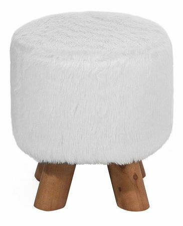 Tato kulatá taburetka je dokonalým doplňkem do každého obytného prostoru – může sloužit jako místo k sezení, podnožka nebo dekorativní doplněk interiéru. Čalounění z bílé umělé kožešiny je neuvěřitelně jemné, ale mimořádně odolné a snadno se udržuje. Nohy taburetky jsou vyrobeny z kaučukového dřeva a díky nim je tento krásný kus nábytku velmi stabilní. Taburetka se dokonale hodí do interiérů zařízených v rustikálním stylu.