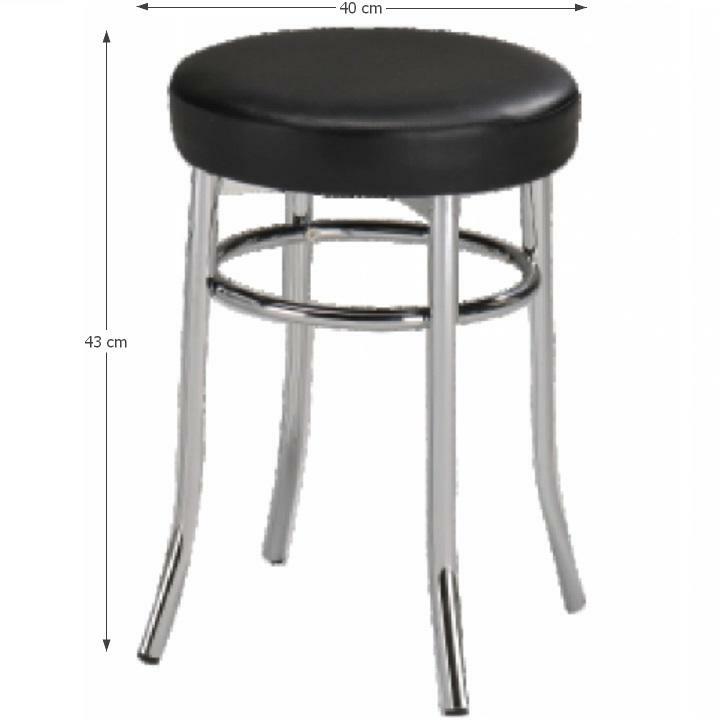 Taburetka Ilano černá o výšce 43 cm a hloubce 40 cm je malá a praktická sedačka, která má chromovou konstrukci a sedák čalouněný černou ekokůží. Výška sedu je ideální pro použití v kuchyni, obývacím pokoji nebo na terase. Taburetka je vyrobena z kovu a ekokůže, která má odolnost proti oděru více než 100 000 cyklů podle testu Martindale. Barva taburetky je kombinace chromu a černé, výška sedu je 43 cm a průměr sedáku je 33 cm. Taburetka Ilano černá má nosnost až 100 kg a dodává se v demontu. Vzhledem ke svým parametrům a designu je ideální jako doplněk k nábytku pro vaši domácnost.