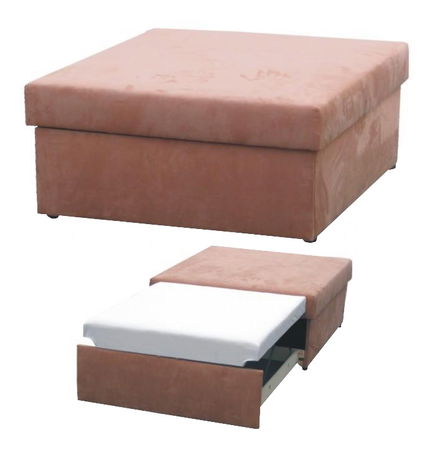 Velká taburetka s praktickým rozkladem, díky kterému se dá taburetka využít i na přespání. Je čalouněná světle hnědou látkou Altara.