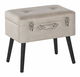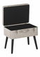 Tato taburetka inspirovaná vintage tvary dokonale zvýrazní interiér v moderním, tradičním i glamour stylu. Je čalouněná béžovou umělou kůží, kterou zvýrazňují ozdobné knoflíky, lesklé stříbrné spony a stylová rukojeť. Elegantní nohy dokonale doplňují celkový design této taburetky a dodávají mu minimalistický charakter. Taburetka se dá otevřít stejně jako skutečný kufr a poskytuje dostatek úložného prostoru pro všechny drobnosti.