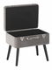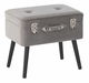 Tato taburetka inspirovaná vintage tvary dokonale zvýrazní interiér v moderním, tradičním i glamour stylu. Je čalouněna šedou sametovou látkou, kterou zvýrazňují ozdobné knoflíky, lesklé stříbrné spony a stylová rukojeť. Elegantní nohy dokonale doplňují celkový design této taburetky a dodávají mu minimalistický charakter. Taburetka se dá otevřít stejně jako skutečný kufr a poskytuje dostatek úložného prostoru pro všechny drobnosti.