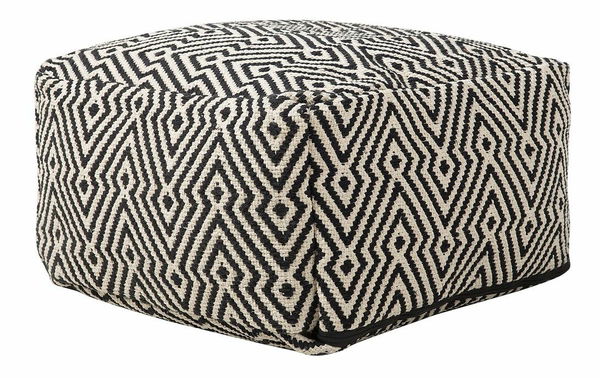 Tato univerzální taburetka se hodí do moderních i tradičně zařízených interiérů. Design ve tvaru krychle z pevného tkaného materiálu v klasické kombinaci černé a bílé barvy zapadne do jakéhokoli interiéru. Díky svému nadčasovému vzhledu a všestrannému využití skvěle poslouží jako příruční stolek, extra místo k sezení nebo podnožka a velmi rychle se stane neodmyslitelnou součástí vašeho obývacího pokoje.