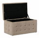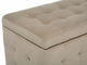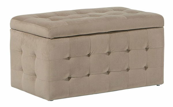 Tento taburet je výrazným kouskem, který obohatí každý interiér. Je vyroben z pevné dřevovláknité desky o střední hustotě, má hrubou pěnovou výplň a jemné sametové čalounění béžové barvy. Taburet má otevírací víko a lze jej použít jako praktický úložný prostor nebo podnožku. Díky klasickému prošívání s knoflíky a neutrálnímu odstínu čalounění je univerzálním kusem nábytku.
