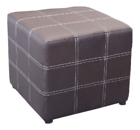 Praktická taburetka čalouněná textilní kůží PU hnědé barvy s kontrastním prošitím. Taburetka je vhodným doplňkem do obývacího pokoje, pracovny či kanceláře jako další možnost k sezení, nebo na vyložení nohou.