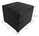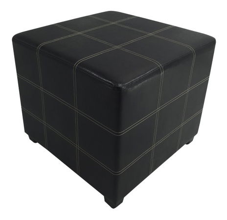 Praktická taburetka čalouněná textilní kůží PU černé barvy s kontrastním prošitím. Taburetka je vhodným doplňkem do obývacího pokoje, pracovny či kanceláře jako další možnost k sezení, nebo na vyložení nohou.