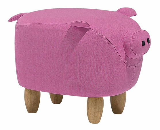 Tato taburetka ve tvaru zvířátka je skvělým doplňkem do všech moderních domácností. Díky nápaditému, ale zároveň jednoduchému designu ve tvaru prasátka je skvělým doplňkem do každého dětského pokoje či místnosti na hraní a stane se nepostradatelnou součástí dětských aktivit a her. Odolné a na dotek příjemné čalounění je vyrobeno z polyesterové látky v zářivé růžové barvě. Celou konstrukci doplňují pevné dřevěné nohy v přírodní světlé barvě.