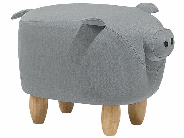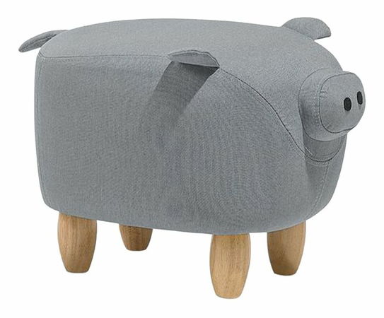 Tato taburetka ve tvaru zvířátka je skvělým doplňkem do všech moderních domácností. Díky nápaditému, ale zároveň jednoduchému designu ve tvaru prasátka je skvělým doplňkem do každého dětského pokoje či místnosti na hraní a stane se nepostradatelnou součástí dětských aktivit a her. Odolné a na dotek příjemné čalounění je vyrobeno z polyesterové látky v jemném odstínu šedé barvy. Celou konstrukci doplňují pevné dřevěné nohy v přírodní světlé barvě.