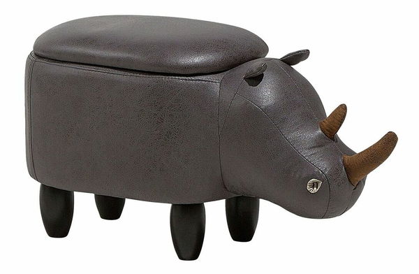 Tato taburetka ve tvaru zvířátka je skvělým doplňkem do všech moderních domácností. Díky nápaditému, ale zároveň jednoduchému designu ve tvaru nosorožce je skvělým doplňkem do každého dětského pokoje či místnosti na hraní a stane se nepostradatelnou součástí dětských aktivit a her. Praktický a prostorný úložný prostor nabízí další místo pro uložení hraček a jiných drobností. Odolné a na dotek příjemné čalounění je vyrobeno z materiálu připomínajícího pravou kůži. Celou konstrukci doplňují pevné dřevěné nohy v tmavé barvě.