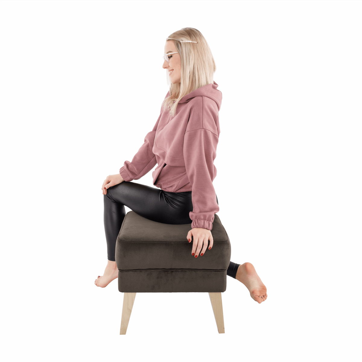 Taburetka Royse Paros 04 (šedohnědá taupe + buk) výška 43 cm hloubka 50 cm Hnědosivá + Buk. Tato stylová taburetka Rodeza není jen k sezení, ale může podepřít i vaše unavené nohy a posloužit jako konferenční stolek. Čalouněná je kvalitní látkou Paros a stojí na pevných černých nožičkách. Materiál taburetky je látka Paros 04 a dřevo. Oděruodolnost textilie byla testována pomocí Martindaleho testu a dosáhla 55 000 oděrů. Taburetka je v taupe-šedohnědé barvě s bukovými detaily. Rozměry jsou 50 x 50 x 43 cm a nosnost na osobu je 90 kg. Výška spodního prostoru od podlahy je 18 cm a taburetka se dodává v demontu.