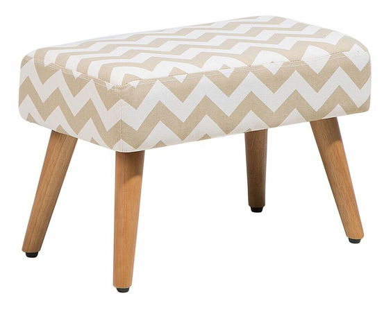 Tato taburetka v moderním stylu dodá každému obývacímu pokoji nebo ložnici jedinečný charakter. Konstrukce z kaučukového dřeva je pokryta na dotek příjemným bavlněným čalouněním. Kombinace bílé, béžové a hnědé výborně doplní interiéry ve skandinávském stylu a zároveň dokáže zjemnit vzhled výrazně zařízených interiérů.