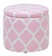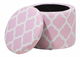 Tato kulatá taburetka je dokonalým doplňkem do každého interiéru laděného v moderním či retro stylu. Použijte ji jako extra místo k sezení nebo jako podnožku. Funkční úložný prostor pod sedadlem je jako stvořený pro odkládání různých drobností. Odolné bavlněné čalounění se vzorem v růžové a bílé barvě se bude skvěle hodit do jakéhokoli interiéru.