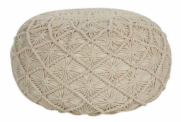 Tato taburetka se stane středobodem celé místnosti zejména díky nádherné béžové barvě a vzoru ve stylu makramé. Je vyrobena z bavlny, takže je odolná a nevyžaduje každodenní údržbu. Je také velmi pohodlná, takže ji lze použít k sezení nebo jako podnožku či dekorativní doplněk.