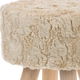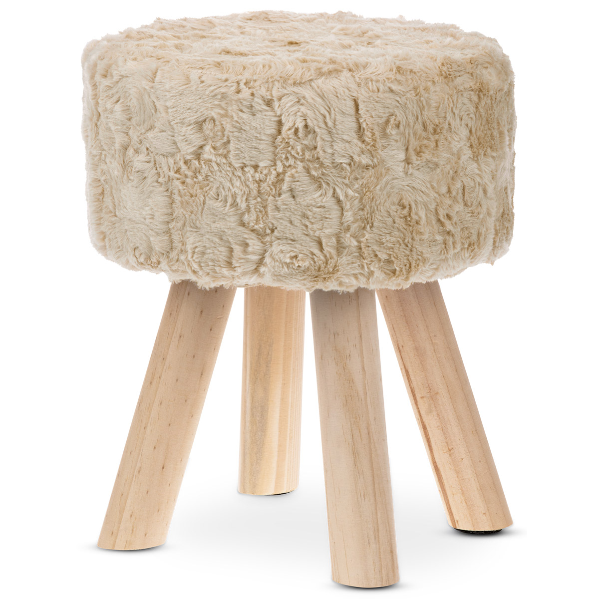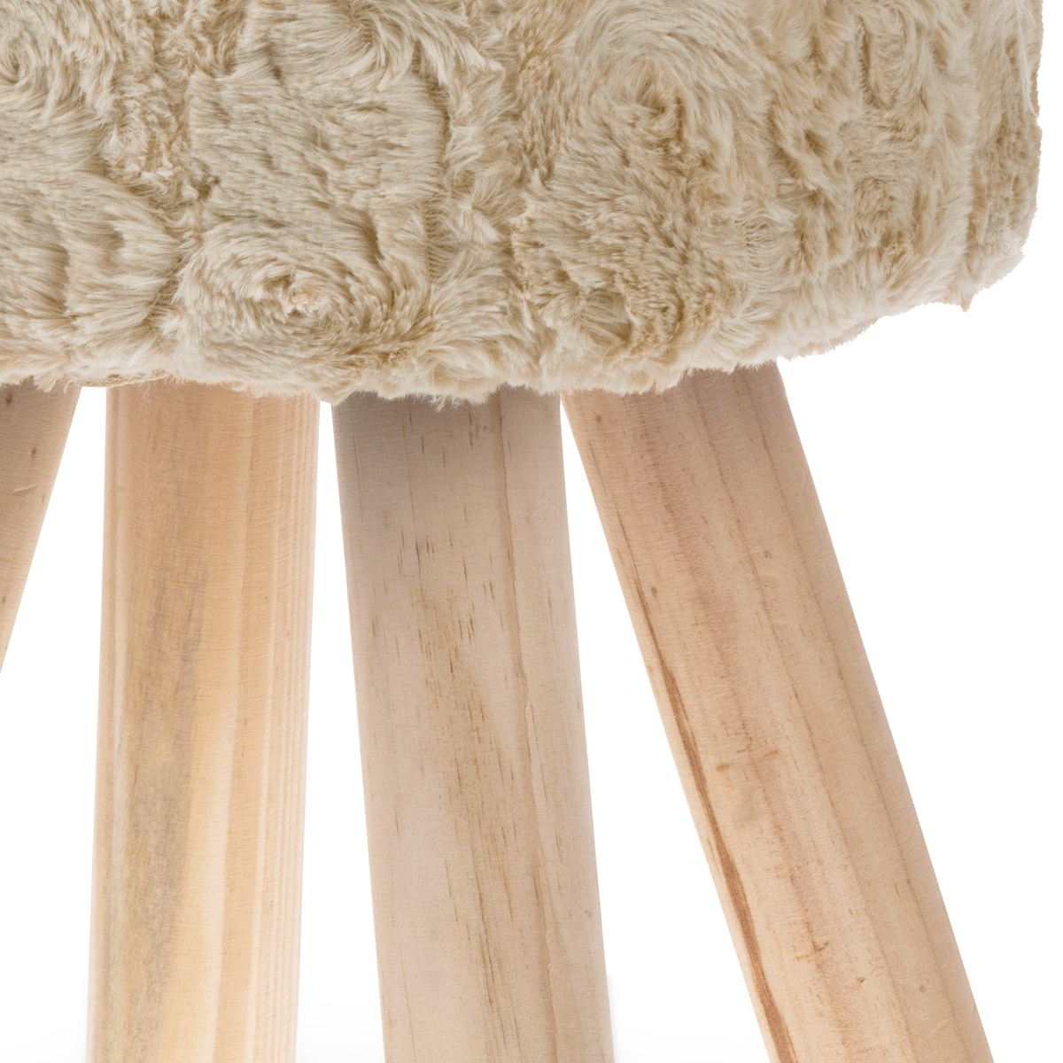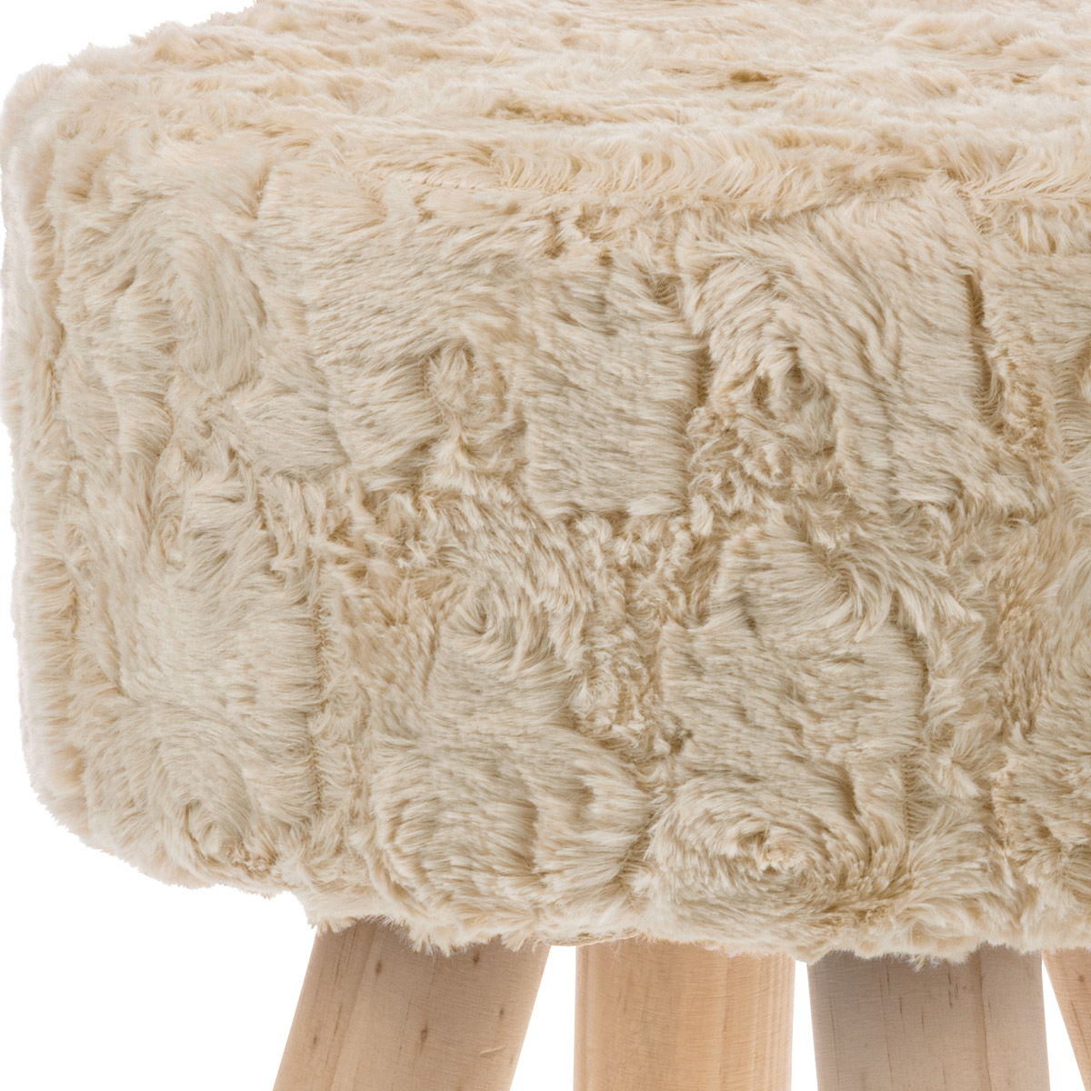 Taburetka kruhového tvaru z modelové kolekce HOME se skvěle hodí jako pomocník v obývacím pokoji, předsíně, postará se o komfort při sledování TV, či dokonce zpříjemní líčení za kosmetickým stolkem. Potah je vyroben z umělé kožešiny ECRU, díky které je taburetka příjemně hebká na dotek. Dostupná v tmavší krémové barvě. Kostra je z masivu, kombinovaného MDF deskou. Výplň z PU pěny. Nožičky jsou vyrobeny z kaučukovníku. Nosnost taburetky je az 80 kg.