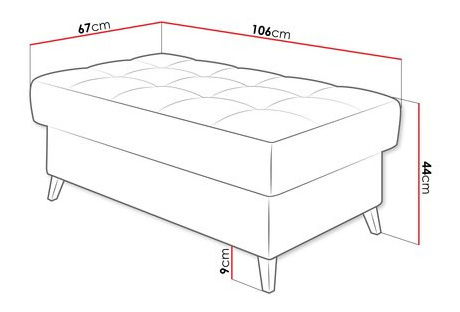 Taburetka je ideální volbou pro ty, kteří hledají pohodlí a styl. Hledáte elegantní sedátko pro obývací pokoj nebo předsíň? Pokud ano, pak máme pro vás dokonalý návrh – taburetku Elsie. Taburetka je vyrobena z vysoce kvalitních komponentů. Její základnou je dřevěný rám a pružinová vložka. Silná vrstva pěny zajišťuje vysoké pohodlí při sezení a odpočinku. Materiály jsou odolné a příjemné na dotek. Design taburetky je doplněn hlubokým prošíváním a ozdobnýma nohama. Rozměry: délka: 106 cm, šířka: 67 cm, výška: 44 cm Provedení: dřevěný rám, vlnitá pružina plst, vysoce odolná pěna T 2844, tloušťka 9 cm, čalounická vatovitá tkanina, neotevíratelná taburetka, dřevěné nohy antracitové barvy Záruka: