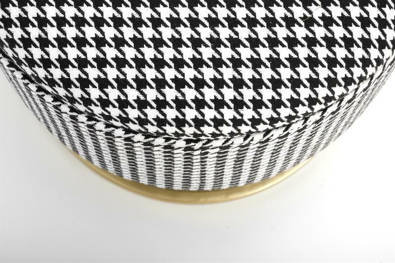 Taburetka Hannah je moderní a elegantní sedací souprava, která bude skvělým doplňkem do každého interiéru. Taburetka má výšku 42 cm a hloubku 40 cm, což ji činí dostatečně velkou pro pohodlné sezení. Výhodou je její úložná funkce, která umožňuje skladování různých věcí. Tento model je k dispozici v bílo-černo-zlaté barvě a je vyroben z příjemné tkaniny a práškově lakované oceli. Součástí balení jsou rukojeti pro snadné přesouvání. Rozměry balíku 1 jsou [výška x šířka x hloubka], bal. 2, balíku čj. 3, balíku č. 3 4 a bal. 5 jsou také k dispozici. S touto kvalitní taburetkou získáte nejen praktický nábytek, ale také stylový prvek do vašeho domova.