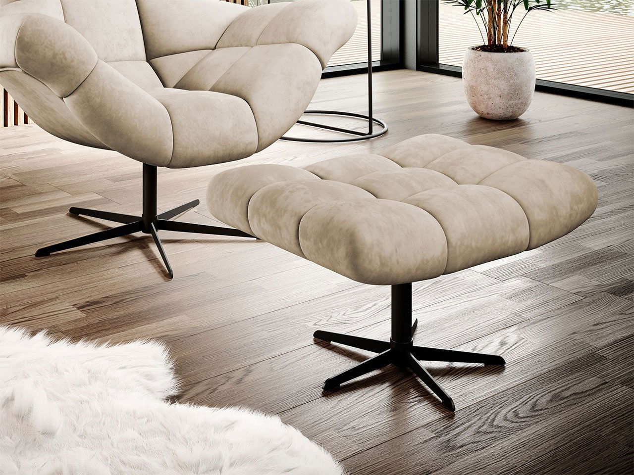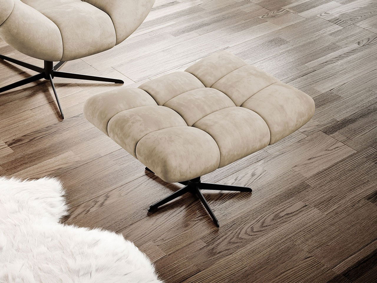 Podnožka je ideální volbou pro ty, kteří hledají pohodlí a styl. Po dlouhém a aktivním dni toužíme po blažené relaxaci a chvilce odpočinku. Podnožka Heimif je kus nábytku, díky kterému si můžete narovnat unavené nohy, opřít se do křesla a na chvíli si odpočinout od každodenních starostí. Tento model se skládá z rámu, který je odlitkem ze skelných vláken. Podnožka má také kovovou základnu a funkci otáčení. Celek podtrhuje ozdobné prošívání umístěné na sedadle. Krásná a mimořádně pohodlná variace je ideální volbou pro relaxaci ve vašem bytě. Rozměry: délka: 69 cm, šířka: 46 cm, výška: 45 cm Provedení: rám: forma ze skleněných vláken, kovový základ, polyuretanová pěna N30, geometrické šití, funkce otáčení Záruka: 24 měsíců