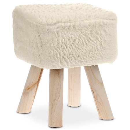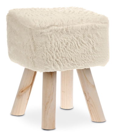 Taburetka čtvercového tvaru z modelové kolekce HOME se skvěle hodí jako pomocník v obývacím pokoji, předsíně, postará se o komfort při sledování TV, či dokonce zpříjemní líčení za kosmetickým stolkem. Potah je vyroben ze stříhané umělé kožešiny, díky které je taburetka příjemně hebká na dotek. Dostupná v jemné krémové barvě. Kostra je z masivu, kombinovaného MDF deskou. Výplň z PU pěny. Nožičky jsou vyrobeny z kaučukovníku. Nosnost taburetky je az 80 kg.