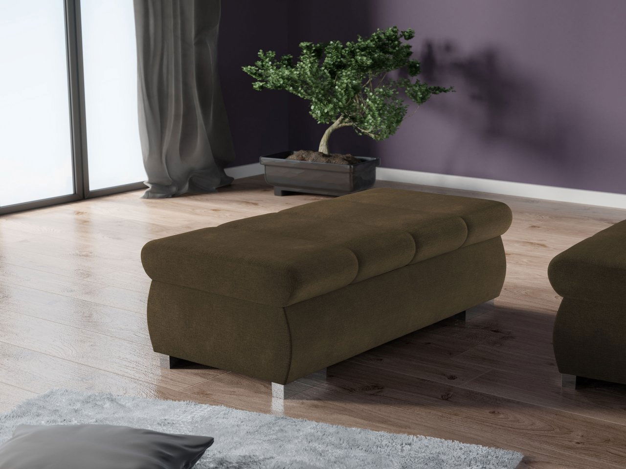 Taburetka je ideální volbou pro ty, kteří hledají pohodlí a styl. Moderní taburetka Kanton doplní váš obývací pokoj dalším sedadlem nebo jej můžete použít jako opěrku nohou, která vám pomůže uvolnit nohy po dlouhém a namáhavém dni. Taburetka za svůj moderní vzhled vděčí módní kombinaci tkanin, čtvercových nohou a prošívání na sedadle. Sedadlo taburetky je vyrobeno z kvalitní potahové látky, jejíž barvy odkazují na šedou nebo hnědou barvu. Na druhé straně je hrudník taburetek zakončen snadno čistitelnou ekokůží. Rozměry: délka: 120 cm šířka: 60 cm výška: 39 cm Dostupné potahy: vyjměte z dostupných potahů zde Vyrobeno: dřevěný rám + dřevotřísková deska, polyuretanová pěna T 28 + vlnitá pružina, taburetka bez úložného prostoru Taburetky Caro Caro Záruční doba: 24 měsíců