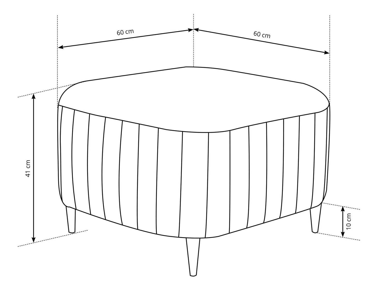 Taburetka s konstrukcí ze dřeva a dřevotřísky je navržena pro pevnost a trvanlivost. Sedák je vyplněn PUR pěnou, což poskytuje pohodlné sezení. Výška sezení je 41 cm a hloubka sezení 60 cm. Taburetka je vybavena kovovými nožičkami o výšce 10 cm, které zaručují stabilitu. Čalouněná je kvalitní tkaninou Castel, která dodává elegantní vzhled.