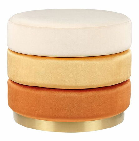 Objevte podmanivý půvab tohoto nádherného taburetu, který je výrazným doplňkem v moderním glamour stylu. Tento nádherný kousek je čalouněný luxusní sametovou látkou, která elegantně spojuje tři prolínající se barevné odstíny. Zlatý kovový podstavec zkrášlí jakoukoli místnost a vnese do ní nádech luxusu. Díky svému jedinečnému designu a komfortu, který nabízí, se stane středem každého prostoru.