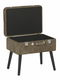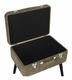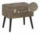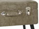 Tato taburetka inspirovaná vintage tvary dokonale zvýrazní interiér v moderním, tradičním i glamour stylu. Je čalouněna světle hnědou manšestrovou látkou, kterou zvýrazňují ozdobné knoflíky, lesklé stříbrné spony a stylová rukojeť. Elegantní nohy dokonale doplňují celkový design této taburetky a dodávají mu minimalistický charakter. Taburetka se dá otevřít stejně jako skutečný kufr a poskytuje dostatek úložného prostoru pro všechny drobnosti.