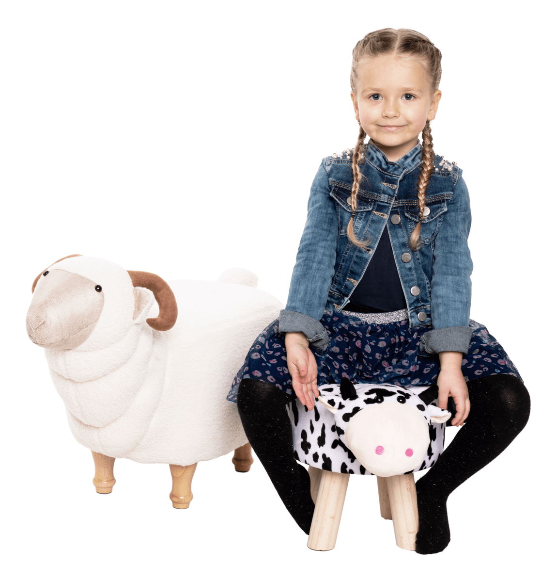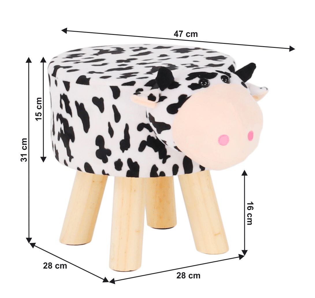 Společné objevování a poznávání nových věcí vytvoří nezapomenutelné zážitky. Taburetka Miley ve tvaru kravičky rozzáří oči každého dítěte a stane se tak skvělým kamarádem na sezení i hraní se. Potah je vyroben z velvet látky, kombinovaný černou a bílou barvou. Stabilitu zajišťují dřevěné nohy. Udělejte radost vašim dětem ještě dnes a vneste jim tak kousek zoo světa do dětského pokoje.