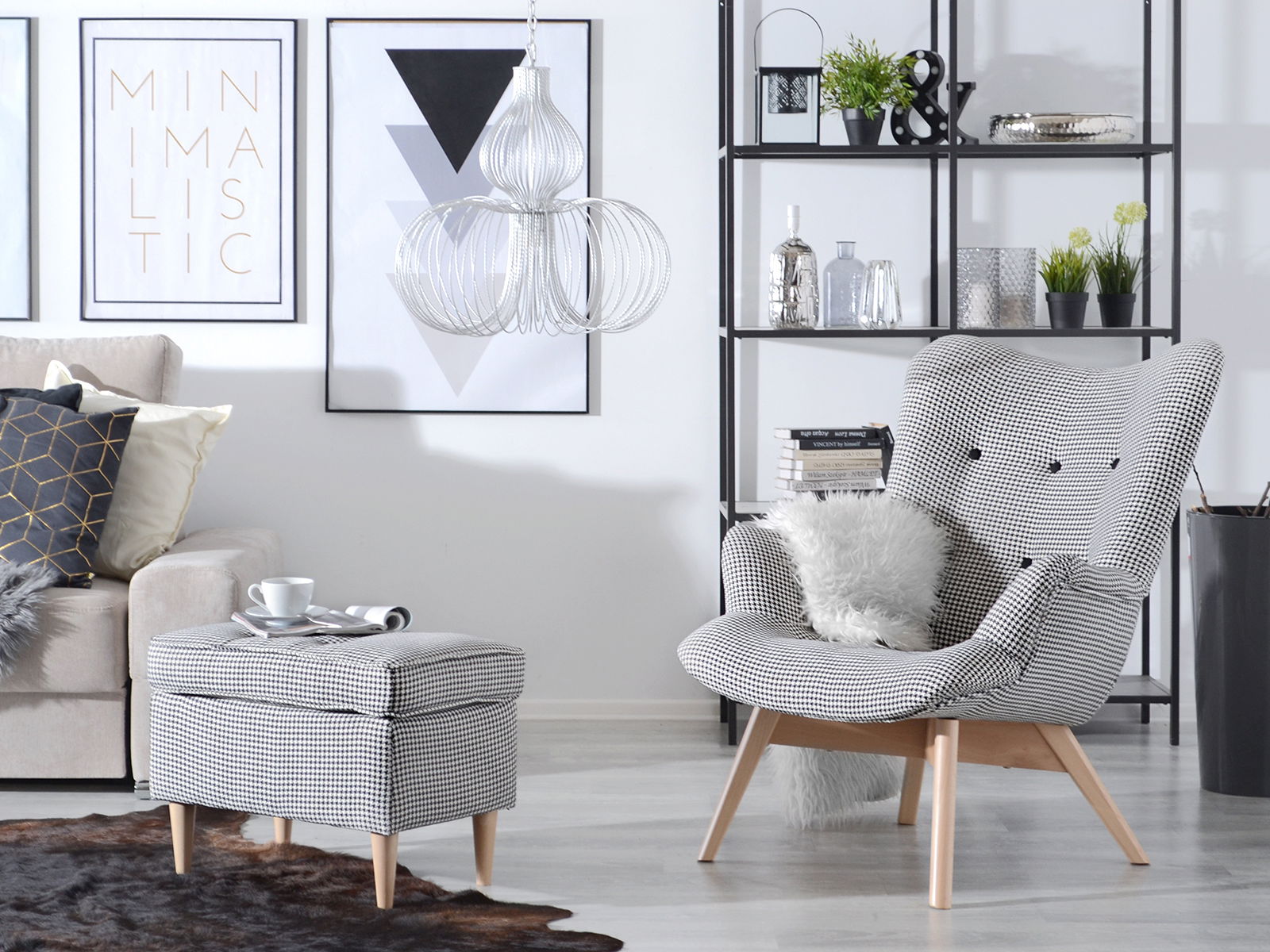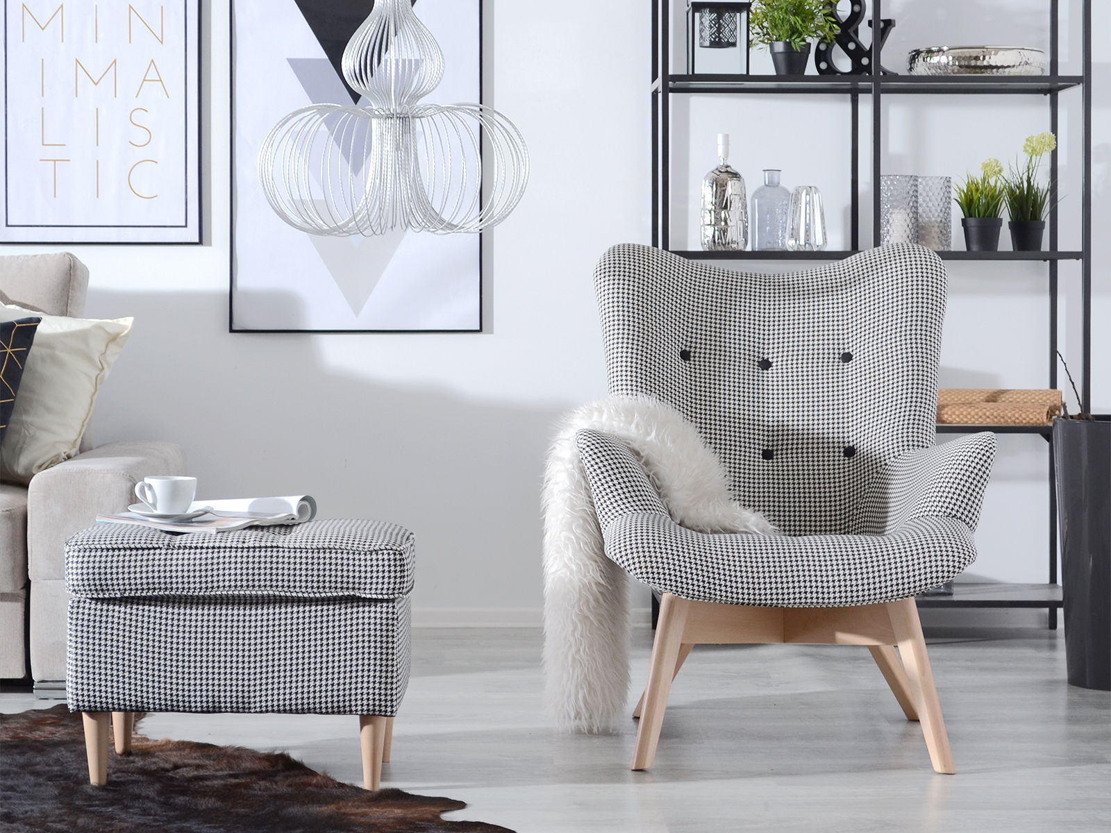 Taburetka Muriera (pudrová růžová + ořech)