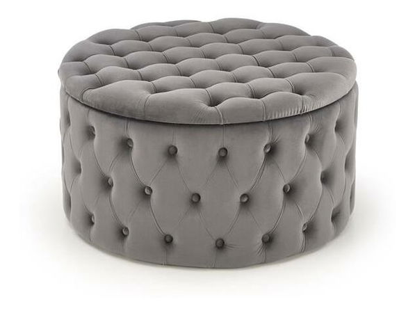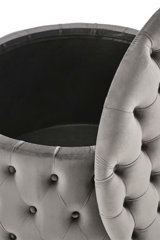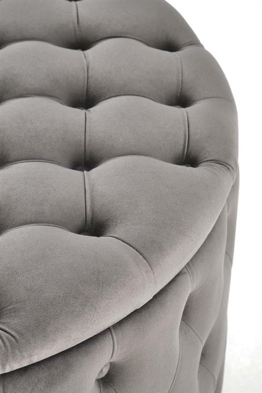 Tato glamour taburetka vyniká svým kulatým tvarem a je bez nožiček, což jí dodává moderní a plynulý vzhled. Čalouněná je luxusní velurovou tkaninou, která zvýrazňuje její elegantní charakter. Kromě toho nabízí praktický úložný prostor pod sedadlem, ideální pro uschování různých předmětů, čímž šetří prostor a udržuje pořádek v místnosti. Tato taburetka je perfektním doplňkem do stylových interiérů, kde kombinuje funkčnost s výrazným estetickým prvkem.