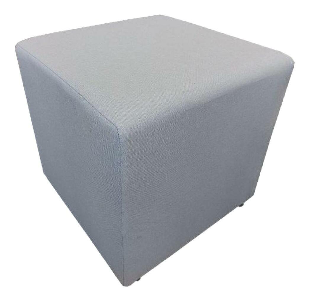 Taburetka trochu tvrdá, ale pekná šedá kocka.
