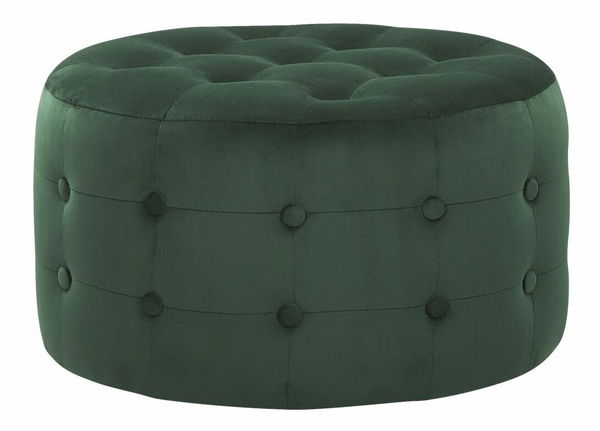 Krásná kulatá taburetka v tmavě zeleném provedení s klasickým prošíváním s knoflíčky, která se hodí do každého moderního či tradičně zařízeného interiéru. Sametové čalounění je neuvěřitelně jemné a zároveň odolné vůči opotřebení, snadno se čistí a udržuje. Tato taburetka je vhodná jako doplněk k pohovce v podobném stylu, ale lze ji použít i jako trendové místo k sezení v obývacím pokoji či ložnici.